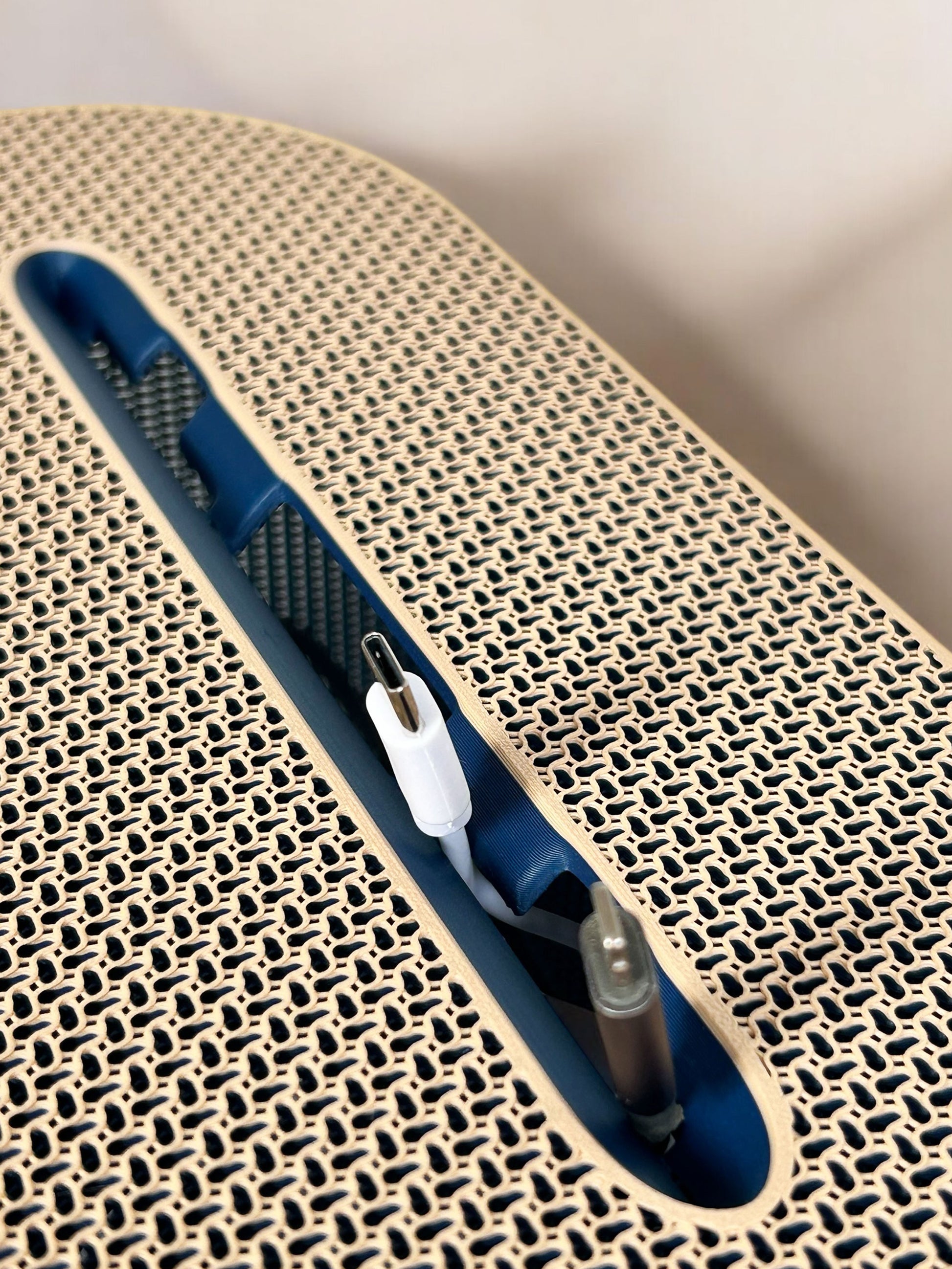 A slicker wicker cable organizer. Perfect to hide away your extension while allowing access to all of your charging or device wires.